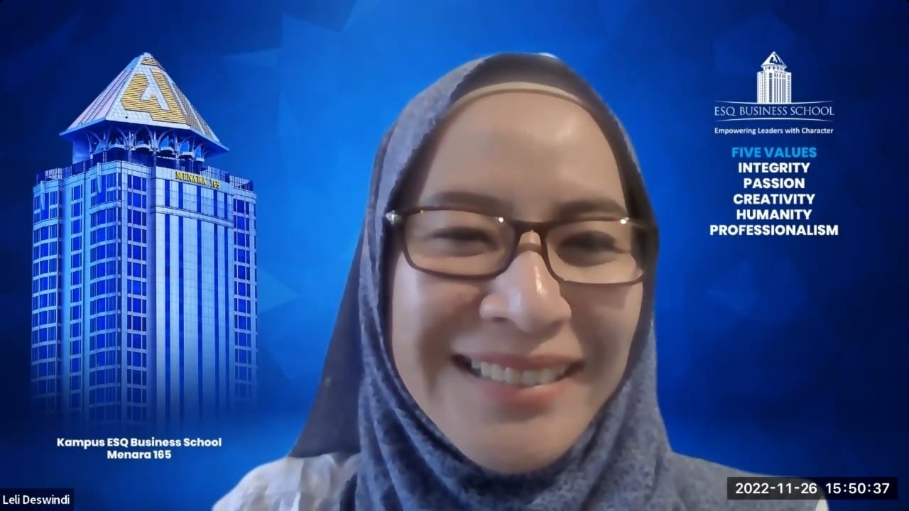 Kemudian dimoderatori oleh Leli Deswindi sekaligus Dosen Manajemen Bisnis ESQ Busines School. Serta hadir juga CEO ESQ Business School, Sujoko Winanto.