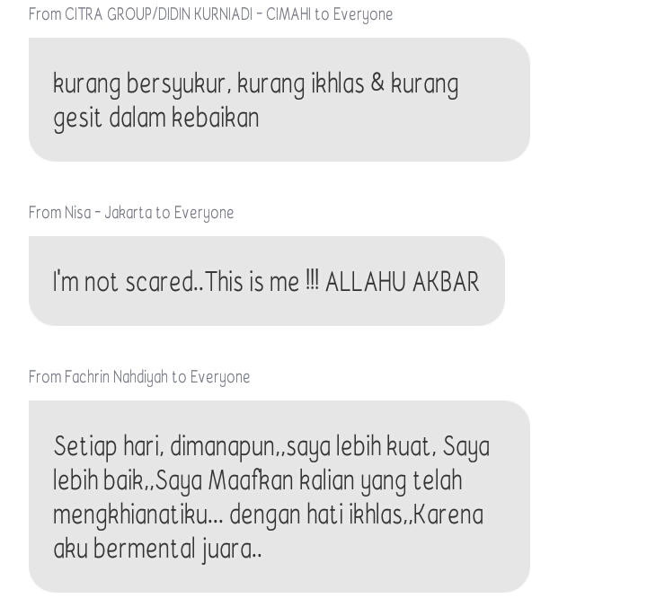 Setelah meninggal kelak kalian bisa berkata kepada Allah. “Aku telah menjalankan amanah sebagai khalifah-Mu. Kebaikan telah tersebar. Terimalah amalanku ya Rabb, berikan aku cahaya. Aku ingin kembali pada-Mu dengan wajah yang tersenyum,” ucap Ary dengan penuh penghayatan.