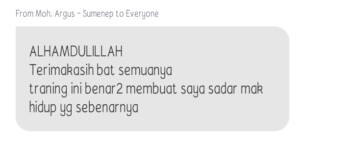 “Manusia diciptakan Tuhan Yang Maha Esa dengan sangat sempurna. Kita semua adalah wakil-nya atau seorang Khalifah di muka bumi ini. Kita memiliki potensi yang luar biasa hebat. Keluarkan potensi yang Allah berikan itu. Pergunakanlah sebaik mungkin. janji ya jadi orang sukses? Banggakan orangtua. Buktikan kamu hebat dan bermanfaat,” papar Founder ESQ.