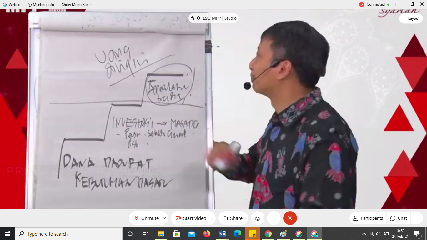 pada Rabu (24/2/2021) melalui Platfrom Webex dalam forum Training ESQ Masa Persiapan Pensiun (ESQ MPP).