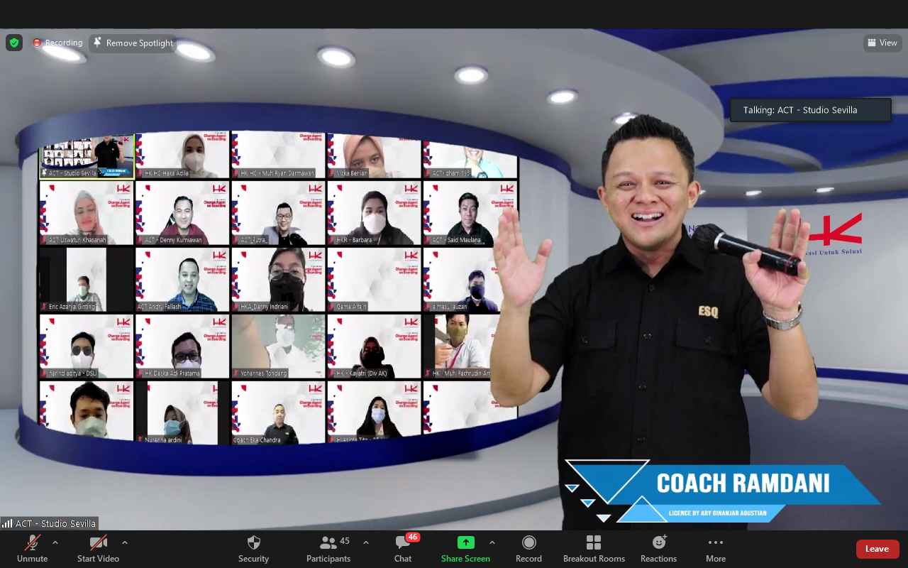 ESQNews.id, JAKARTA - PT Hutama Karya (Persero) telah mengikuti Change Agent Program dari ACT Consulting pada Rabu-Kamis (19-20/1/2022) via Zoom Meeting. Selama 2 hari penuh dari pagi hingga sore tersebut, puluhan insan HK dipandu oleh Coach Eka Chandra dan Coach Ramdhani (trainer lisensi dari Dr. (H.C) Ary Ginanjar Agustian).