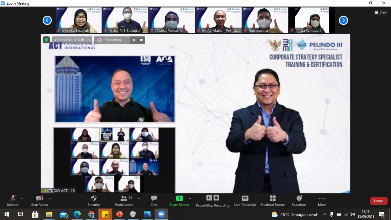ESQNews.id, JAKARTA - Telah berlangsung workshop Corporate Strategy Specialist (CSS) selama 3 hari secara virtual. Workshop yang digelar oleh ACT Consulting tersebut ditujukkan untuk semua tim Perencana Strategis PT Pelindo 3 (Persero).