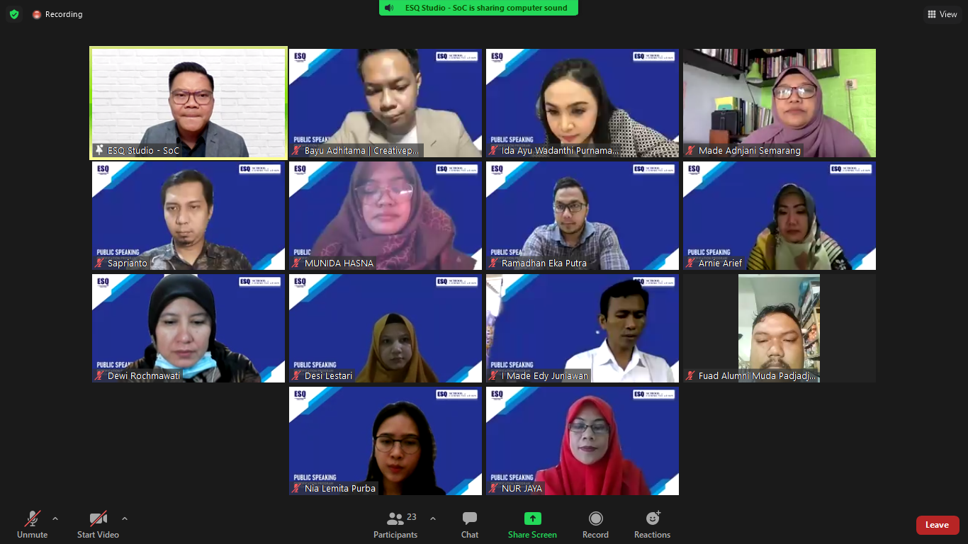 training yang bertajuk “Public Speaking Certification”, berlangsung selama 2