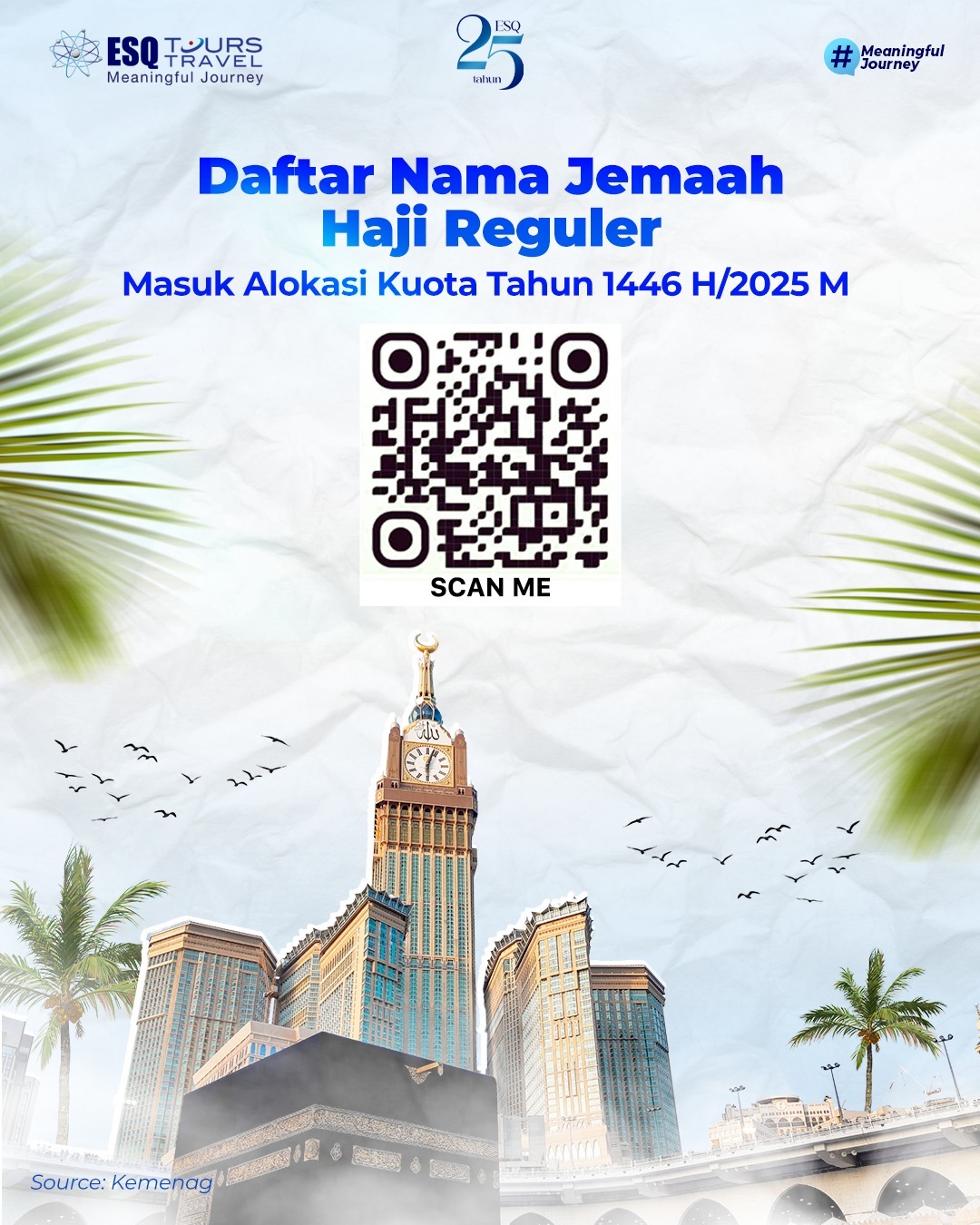 ESQNews.id, JAKARTA - Kementerian Agama mengumumkan secara resmi Daftar nama Jemaah Haji Reguler yang yang masuk alokasi Kuota Haji Reguler tahun 2025M/1446 H melalui official sosmed Kemenag RI @informasihaji @kemenag.RI