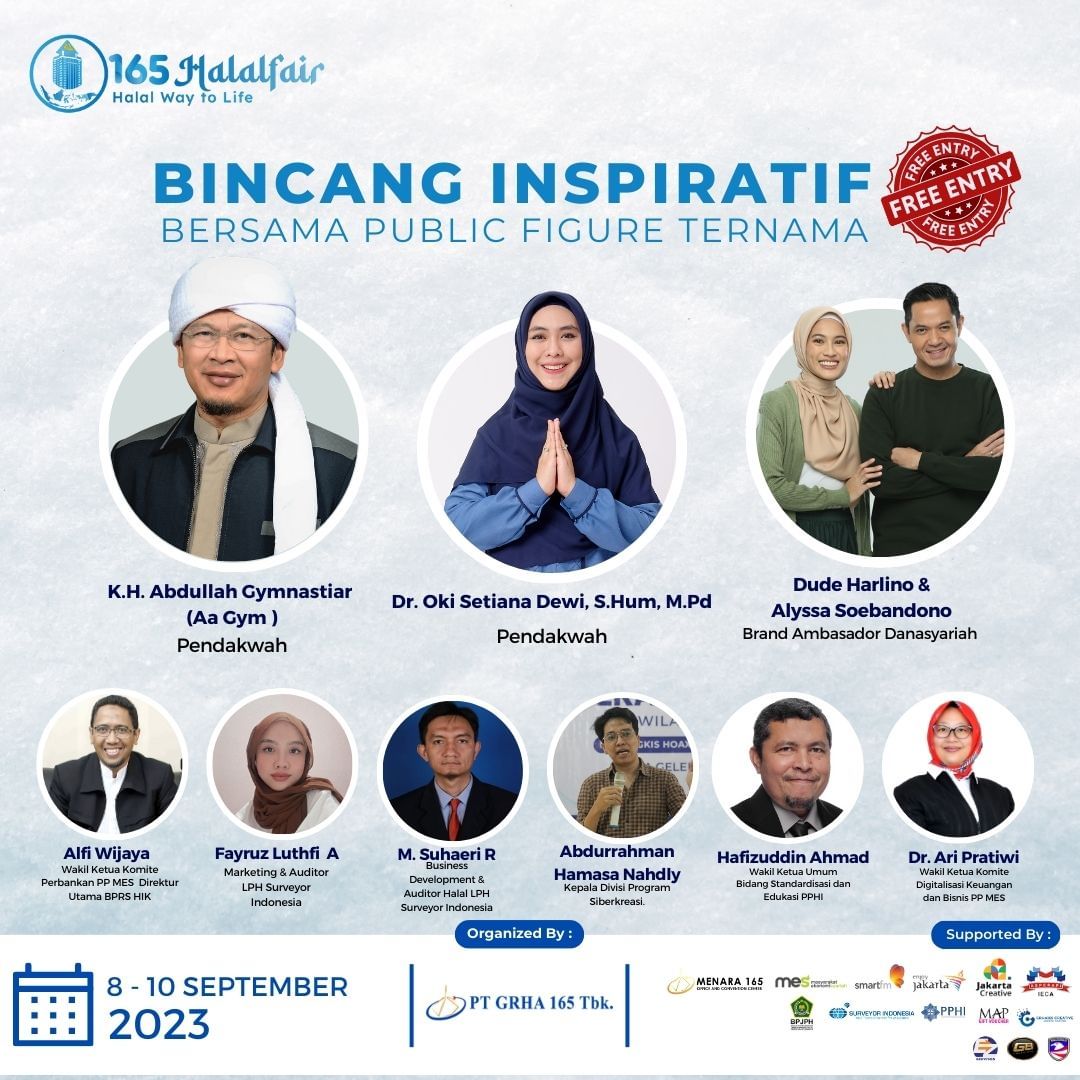 Dilanjutkan oleh Nourman Prabowo selaku Project Manager PT. Grha 165 tbk yang katakan, “Dengan mengusung konsep Halal Way To Life menjadi pilihan gaya hidup dikarenakan manfaat kebaikan bagi kehidupan seseorang, 165 Halal Fair, sebuah event yang menghadirkan beragam pilihan produk2 UMKM diantaranya : Produk berbagai macam kuliner, Tours & Travel, Haji & Umrah, Wedding Syariah, Halal Cosmetic, Property Syariah hingga Perbankan Syariah."