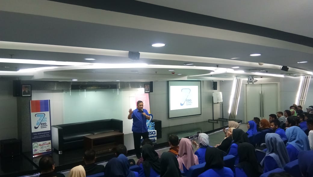“Hanya ada di EBS saja. Kampus diluar sana kebanyakan hanya mengandalkan kecerdasan intelektual saja. Berbeda dengan kampus ESQ Business School ini miliki metode belajar SKI mengandalkan tiga kecerdasan yaitu kecerdasan spiritual, kreativitas (emosional) dan tentunya intelektual,” tutur Ary Ginanjar saat berikan sambutan.