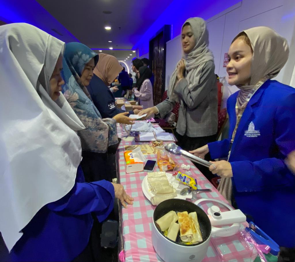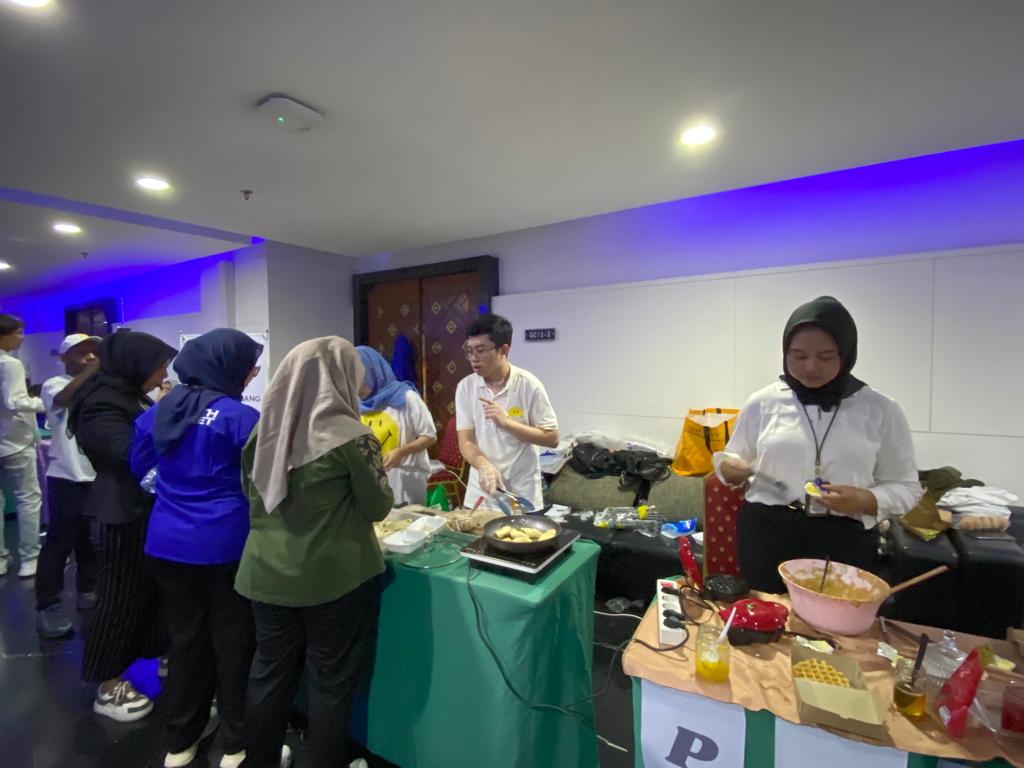 Ada mahasiswa bernama Faisal bersama tim yang menjual produk Pempek khas Palembang (Pempek Delight) dan es buah mumer (murah meriah).