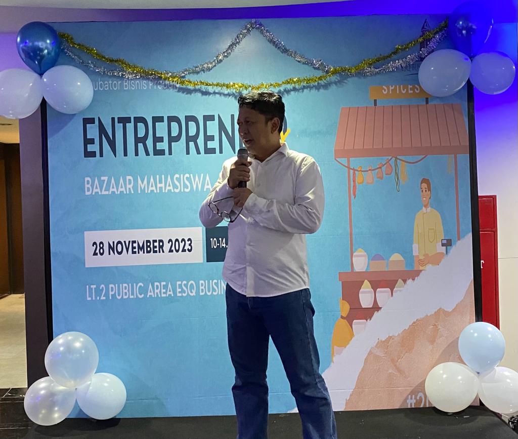 Turut hadir dan memantau acara, Mariah (Dosen Pembimbing Kelas Wirausaha Prodi Bisnis Manajemen) sambil menjelaskan latar belakang terselenggaranya perhelatan ini.