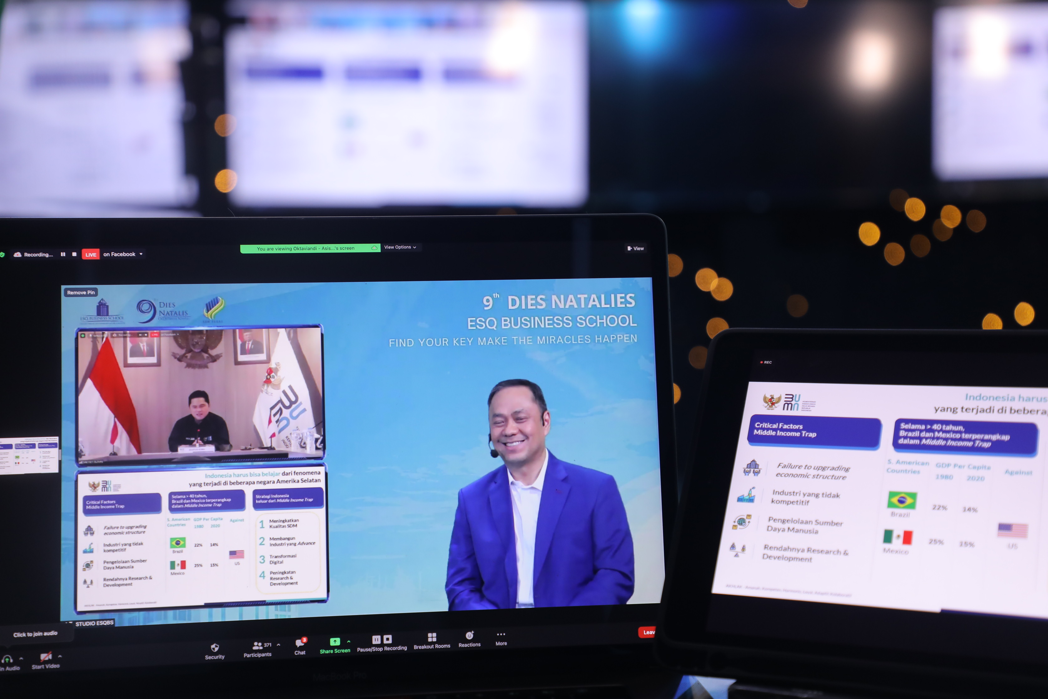 ESQNews.id, JAKARTA - Tepat pada hari Senin (13/12) ESQ Business School menggelar acara puncak Dies Natalis ke-9 yang bertemakan “Golden Era: Find Your Key, Make The Miracle Happen.” Yang dihelat secara daring melalui aplikasi Zoom Meeting. Lebih dari 250 peserta hadir dalam Zoom Meeting ini. Acara ini juga disiarkan secara langsung di Instagram ESQ Business School dan Facebook Fanpage Ary Ginanjar Agustian.
