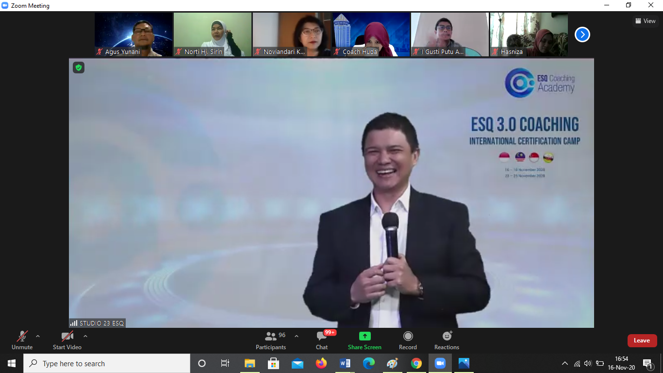 ESQNews.id, JAKARTA – Sekitar 83 orang yang berasal dari 4 negara yakni Malaysia, Singapura, Brunei Darusalam dan Indonesia mengikuti Training ESQ 3.0 Coaching International Certification Camp melalui daring.