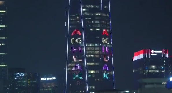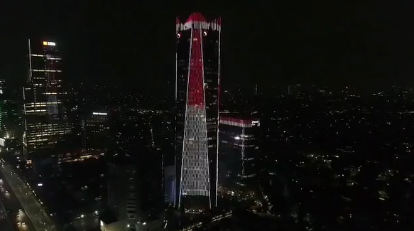 Bisa dilihat dalam Video, Core Values BUMN AKHLAK dituliskan pada 4 sisi gedung Telkom Landmark Tower, Jakarta.