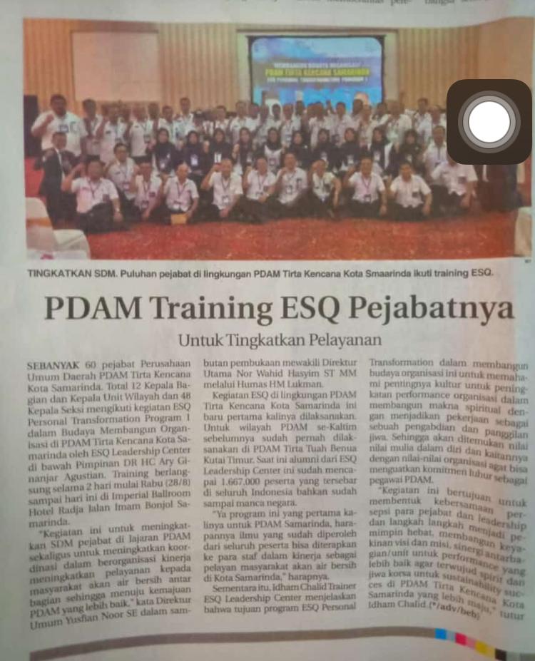 Kegiatan ESQ di lingkungan PDAM Tirta Kencana Kota Samarinda ini baru pertama kalinya di laksanakan, untuk wilayah PDAM Se Kaltim sebelumnya sudah pernah dilaksanakan di PDAM Tirta Tuah Benua Kutai Timur.