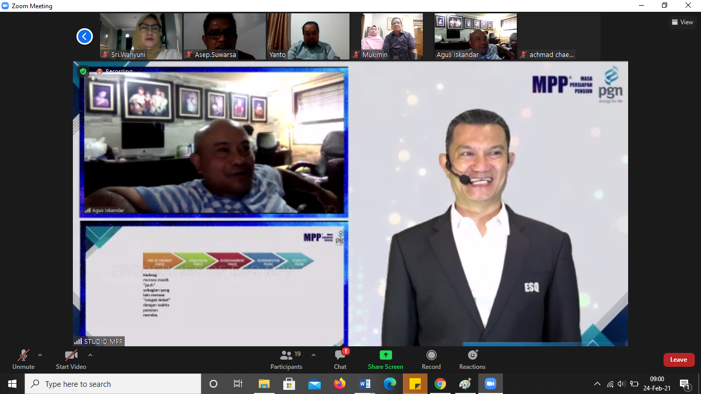 Bersama seorang Coach Iman Herdimansyah (trainer lisensi dari Dr. (H.C) Ary Ginanjar Agustian), semua kekhawatiran, kegelisahan, kepanikan, di kupas tuntas dalam training ini, supaya pensiunan insan PGN menjadi lebih bahagia dan bermakna.