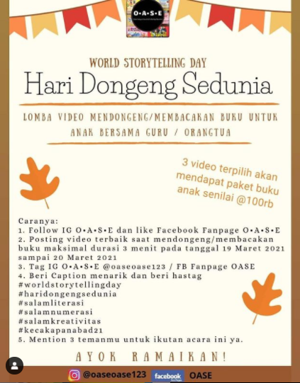 ESQNews.id, JAKARTA - Dalam rangka memperingati Hari Dongeng Sedunia yang digelar setiap tanggal 20 Maret setiap tahunnya, akan ada banyak kegiatan dari berbagai komunitas pastinya. Tujuannya, agar kita semua mempertahankan cerita, dongeng, kisah, yang hampir punah ditelan masa ini.