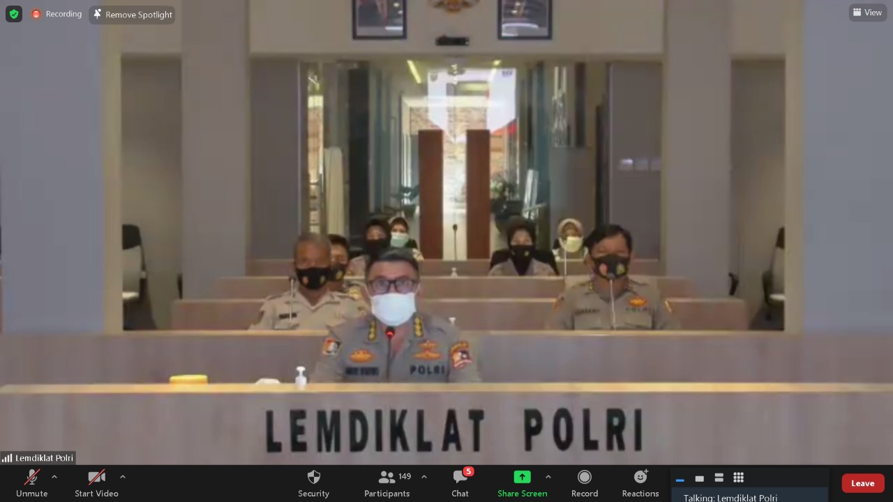Aktivitas calon polisi pagi ini berlangsung sangat ramai dan gemuruh, penuh semangat, nampak dari layar zoom studio lantai 18 Menara 165.