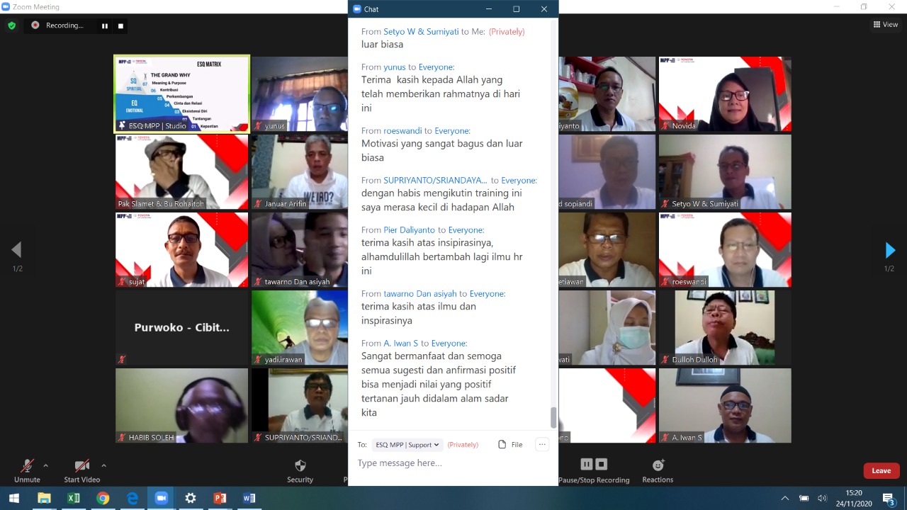 (24-26/11/2020) Insan PT Toyota Astra Motor (TAM) ikuti program dari ESQ Masa