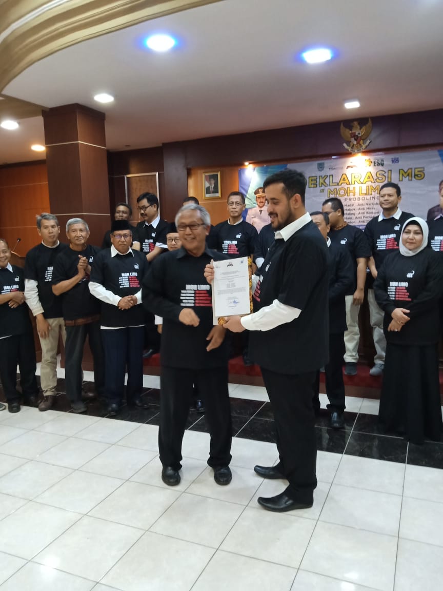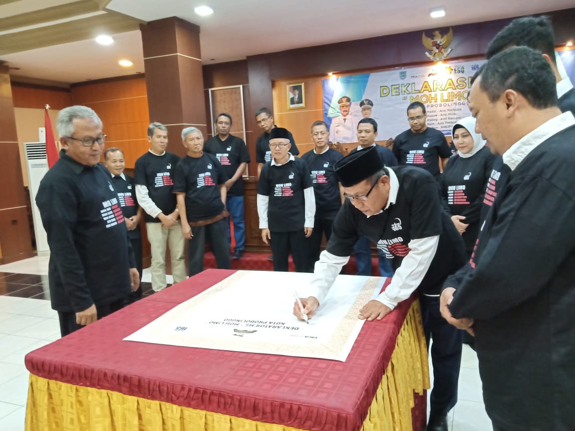 Dukungan itu diungkapkan usai FKA ESQ Kota Probolinggo melakukan deklarasi Moh Limo di Ruang Sabha Bina Praja, Pemkot Probolinggo. Yakni, moh madat (anti narkoba), moh mabok (anti miras), moh maling (antikorupsi), moh main (antiperjudian), dan moh madon (antiprostitusi).
