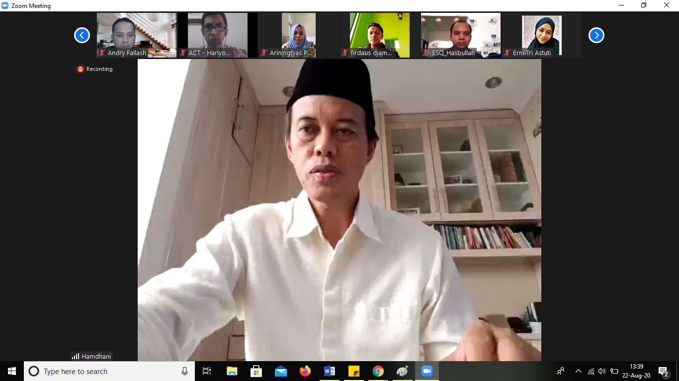 BismillahirrohmanirrohimAsyhadu an laa ilaaha illallaahu, wa asyhaduanna muhammadar rasuulullah. Yang artinya aku bersaksi bahwa tidak ada Tuhan melainkan Allah. Dan aku bersaksi bahwa Nabi Muhammad adalah utusan Allah,” ucapnya melalui Webinar.