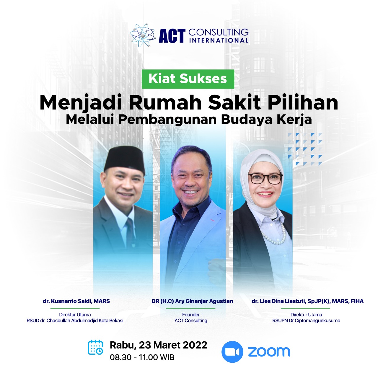 Oleh karenanya, ACT Consulting akan selenggarakan sebuah acara untuk menjawab bagaimana cara membangun Budaya Kerja yang sesuai dengan iklim Rumah Sakit. Serta menjawab bagaimana cara menciptakan para Civitas Hospitalia yang berorientasi pada kinerja.