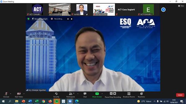 Training ini dibuka oleh Dr. Ir. Soni Solistia Wirawan, M.Eng. (Deputi I (TAB)) mewakili Sestama BPPT. Kemudian sambutan dari Dr. (H.C) Ary Ginanjar Agustian (President ACT Consulting) secara daring.
