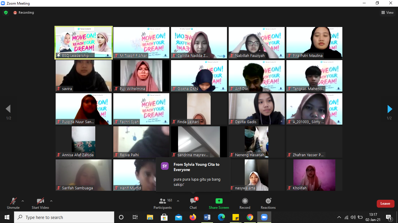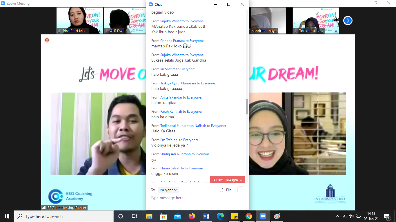 Mereka sangat antusias menyapanya, terlihat dari forum chat dari 3 link zoom yang masing-masing link berkapasitas 1000 orang.