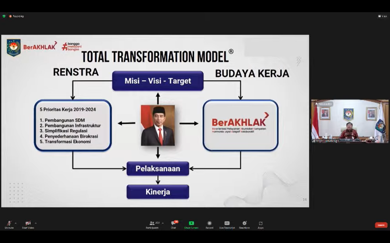 Selanjutnya, Suhajar Diantoro melalui Zoom Meeting mengatakan bahwa digelarnya kegiatan ini juga sebagai langkah tindak lanjut Kemendagri terhadap arahan dari Presiden Jokowi terkait Core Values ASN yang baru yaitu BerAKHLAK (Akronim dari Berorientasi Pelayanan, Kompeten, Harmonis, Loyal, Adaptif, Kolaboratif) serta diluncurkan juga 5 prioritas kerja 2019-2024.