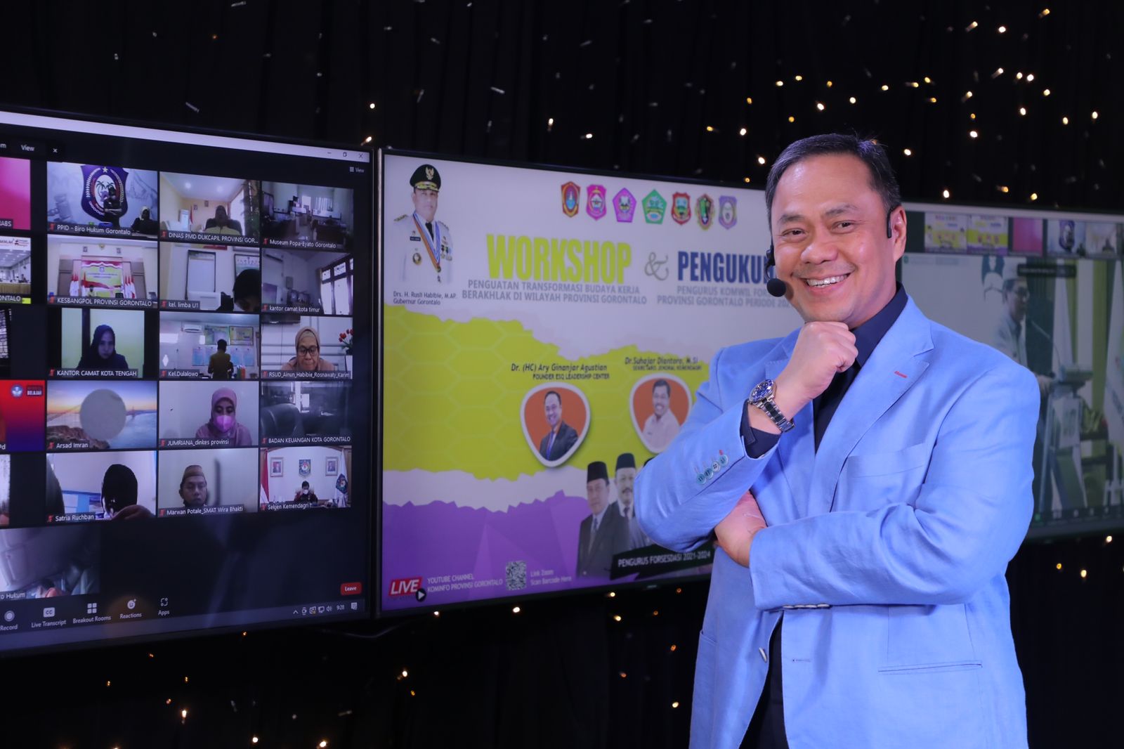 Turut hadir juga beberapa narasumber yaitu Suhajar Diantoro (Sekjen Kemendagri), Darda Daraba (Sekda Provinsi Gorontalo), Ary Ginanjar Agustian (Founder ESQ Group).