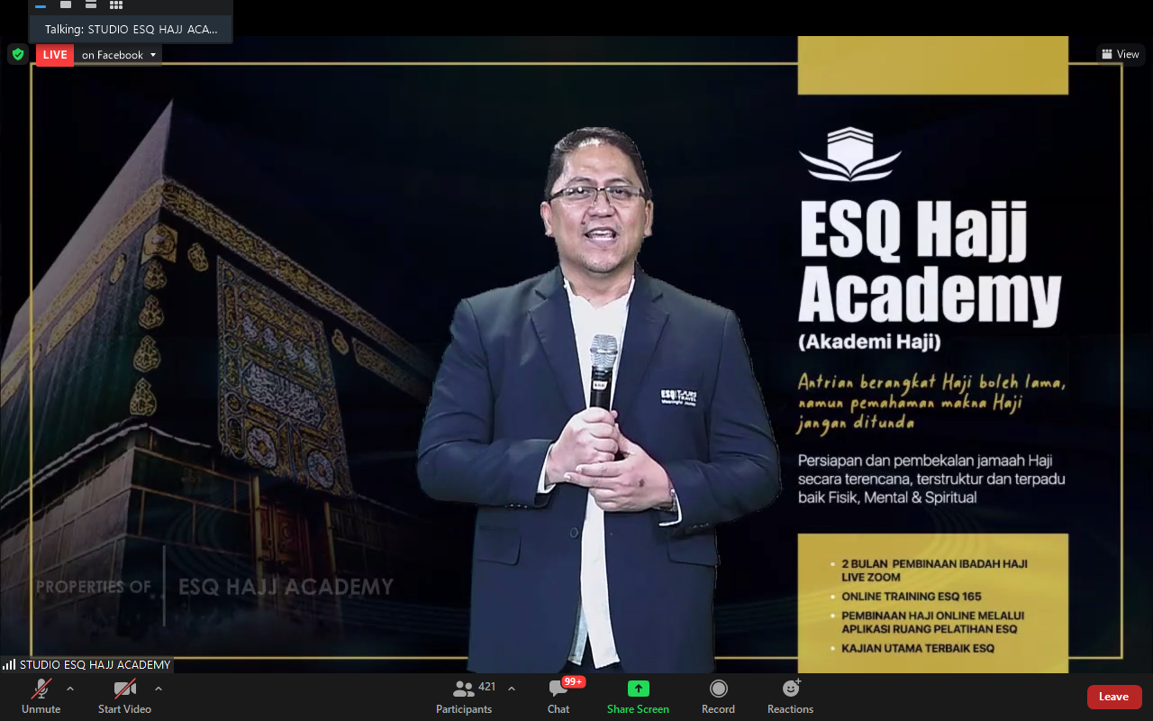“Ilmu haji adalah ilmu yang tertinggi. Ilmu yang membuat orang bahagia dan sukses. Namun sayang banyak orang yang tidak tahu akan hal ini,” kata Ary Ginanjar Agustian dari Studio lantai 23 Menara 165.
