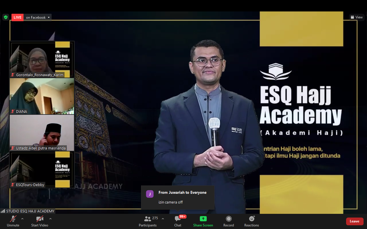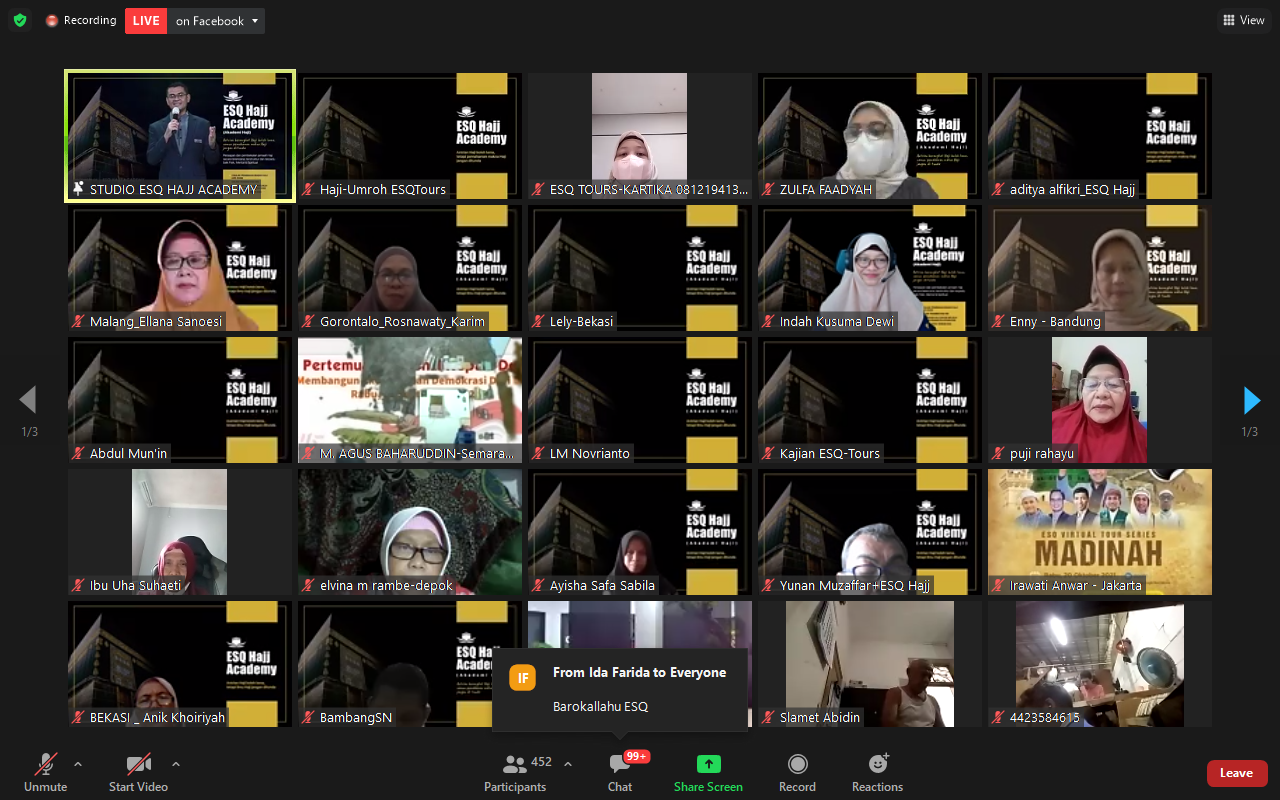 Acara ini digelar oleh ESQ Tours Travel pada Rabu (20/10/2021) secara virtual. Ada sekitar 500 orang yang hadir di dalam zoom meeting dan ratusan orang yang menonton dari Facebook (live streaming) dengan 8,3 ribu tayangan. Mereka berasal dari Jepang, Malaysia, bahkan seluruh penjuru di Indonesia.