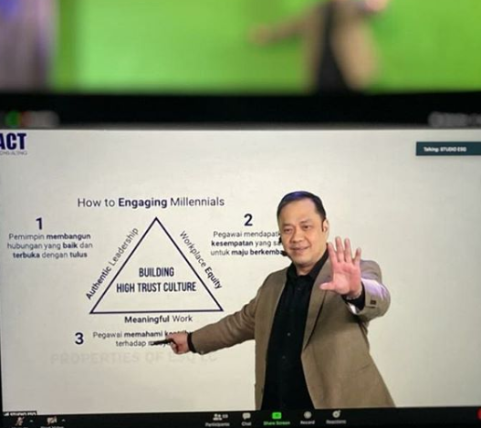 “Tahukah kamu bahwa 55% milennials tidak betah kerja lama-lama dan bosenan. Betul? Nah, Hari ini saya mengajar di dalam Training Transformational Leadership. Bagaimana cara seorang Leader mampu menghandle dan menumbuhkembangkan milennials supaya betah, happy dan berkembang menjadi seorang TALENT di Generasi Indonesia Emas 2045,” tutur CEO ESQ Group.
