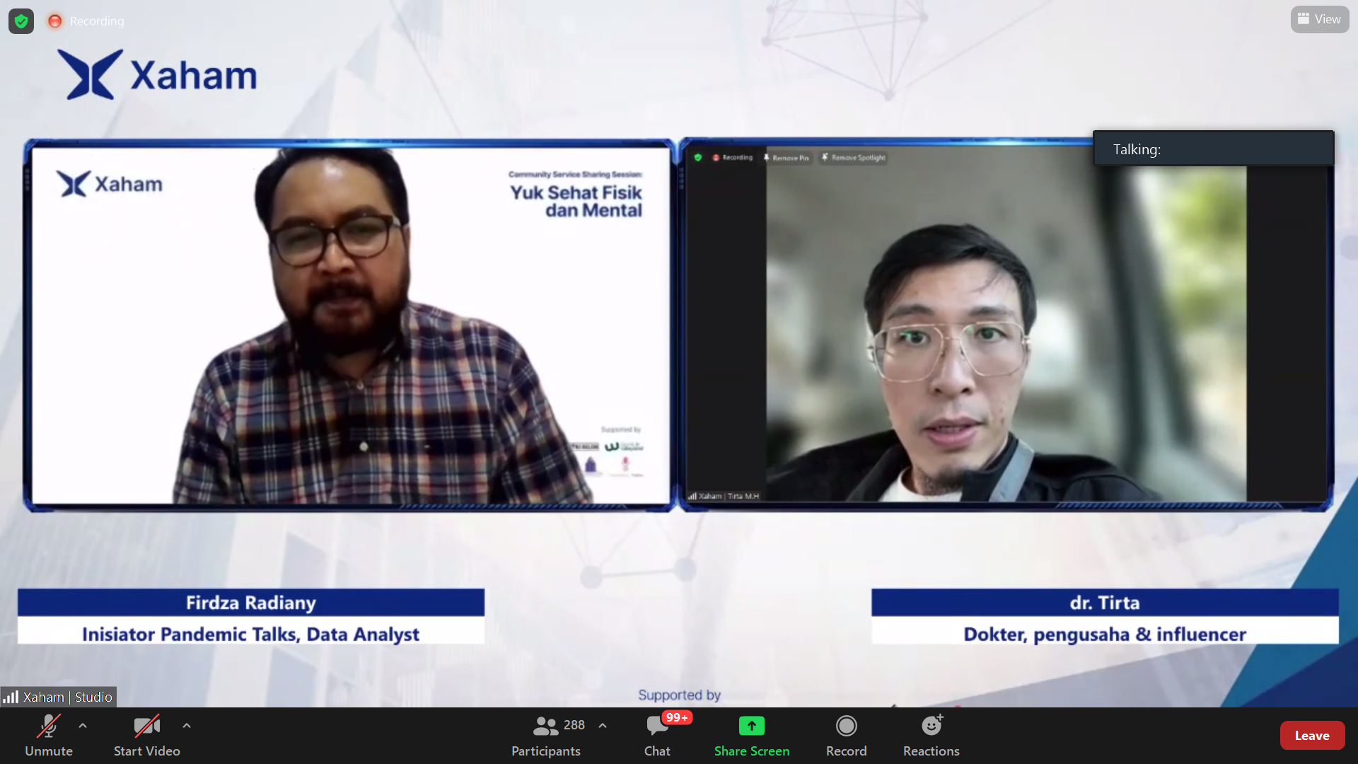 Sandi Muharam (ESQ Hypnotherapist), dan Firdza Radiany (Inisiator Pandemic