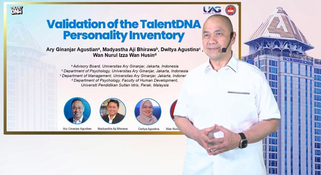 Dalam forum ilmiah bergengsi tersebut, Dr. (H.C) Ary Ginanjar Agustian, pendiri ESQ Leadership Center sekaligus penggagas utama TalentDNA, menegaskan pentingnya pendekatan yang terukur dan berbasis nilai dalam memahami potensi manusia.
