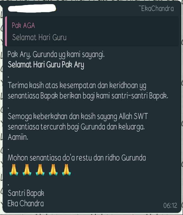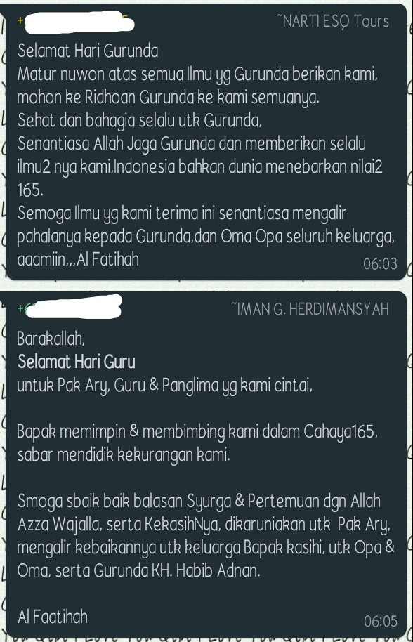 Ary membagikan sebuah ucapan dan video di Group Keluarga ESQ. Sebuah video dengan durasi 05.49 menit itu berisi tentang ucapan-ucapan dari rakyat Indonesia kepada semua insan pendidik, diiringi dengan pemutaran lagu.