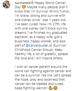 “Support adalah salah satu dari obat yang luar biasa, support bukan membuat mereka terkekang dengan melarang agar tidak melakukan apapun, tapi memberikan mereka kepercayaan dan perlindungan. Agar mereka bisa pulih seperti biasanya. Bukan melihat mereka dari kelemahannya tapi melihat mereka untuk jadi lebih kuat.” - @cak.son