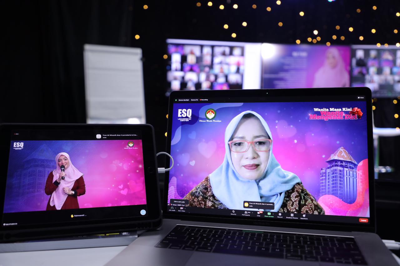 ESQNews.id, JAKARTA - dr. Erni Guntarti Tjahjo Kumolo, Ketua Umum DWP (Dharma Wanita Persatuan) ikutserta dalam webinar dengan tajuk "WANITA MASA KINI, WANITA MENGENAL DIRI", bersama Dr. (H.C) Ary Ginanjar (Founder ESQ Group) dan Coach Nia Fiani (trainer ESQ) pada Sabtu (17/4/2021). Dihadiri oleh 3,473 wanita dari seluruh Indonesia bahkan mancanegara seperti Malaysia, San Fransisco, Dhaka, Eropa, Abu Dhabi, Singapura, dan Turki.