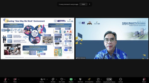 "Success story atau langkah langkah yang harus kami lakukan di dalam membangun ekosistem budaya terdapat 5 faktor kesuksesan dibalik Bank BJB ini yang perlu diperhatikan yaitu terkait dengan people mulai peningkatan kompetensi dan kinerja, pembentukan tim, learning dan development.