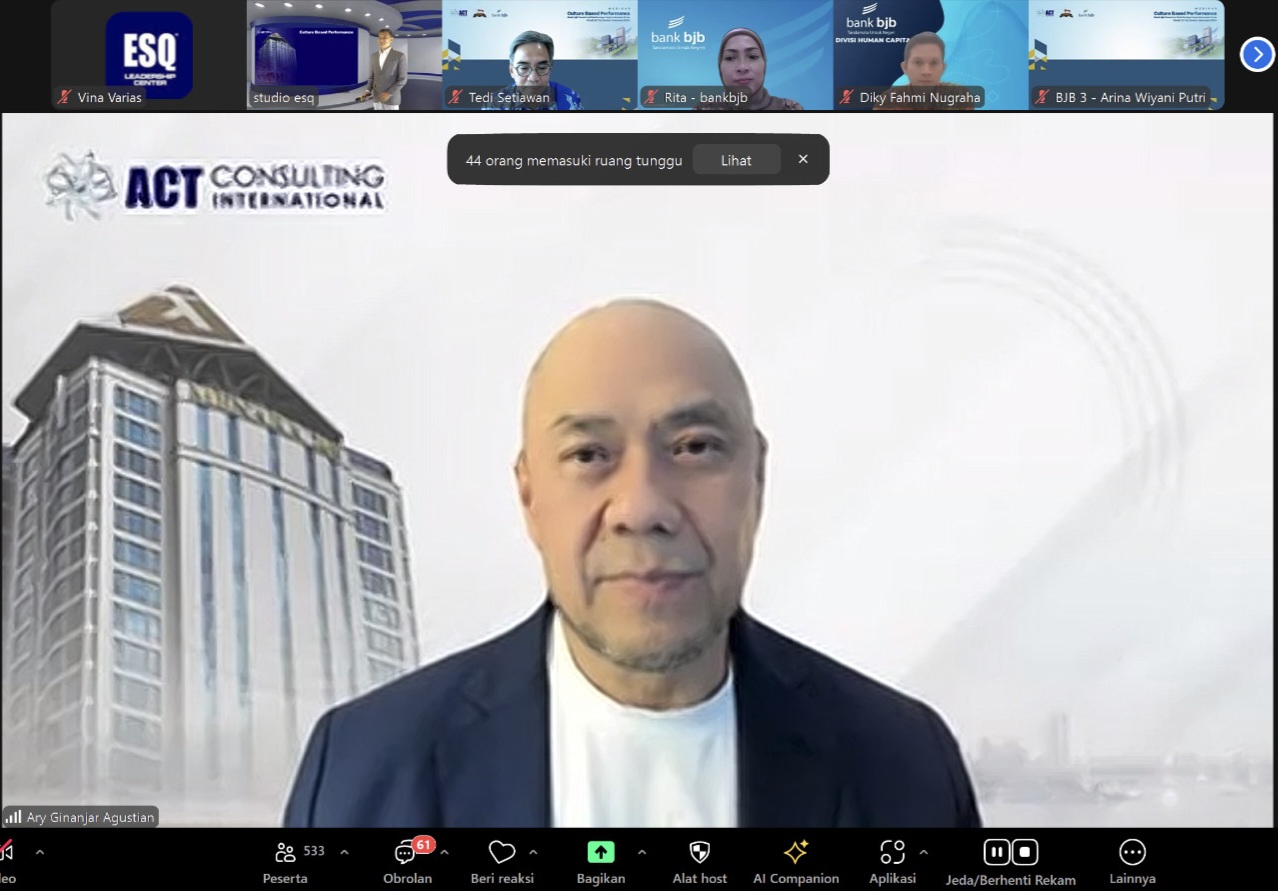 Ini sangat penting bagaimana kami mengukur terhadap organization culture health indeks ini Kebetulan bahwa ACT consulting ini juga selalu melakukan penilaian secara berkala tidak hanya dengan di Bank BJB tapi juga di industry per bankan dan juga perusahaan perusahaan lainnya.