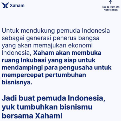 “Sekarang, tau kan kalau potensi wirausaha di Indonesia itu tinggi banget. Sayang banget kan kalau potensial itu sekedar menjadi potensi?” – tulis akun @xaham.id di IG-nya yang diposting pada Kamis (15/4/2021).