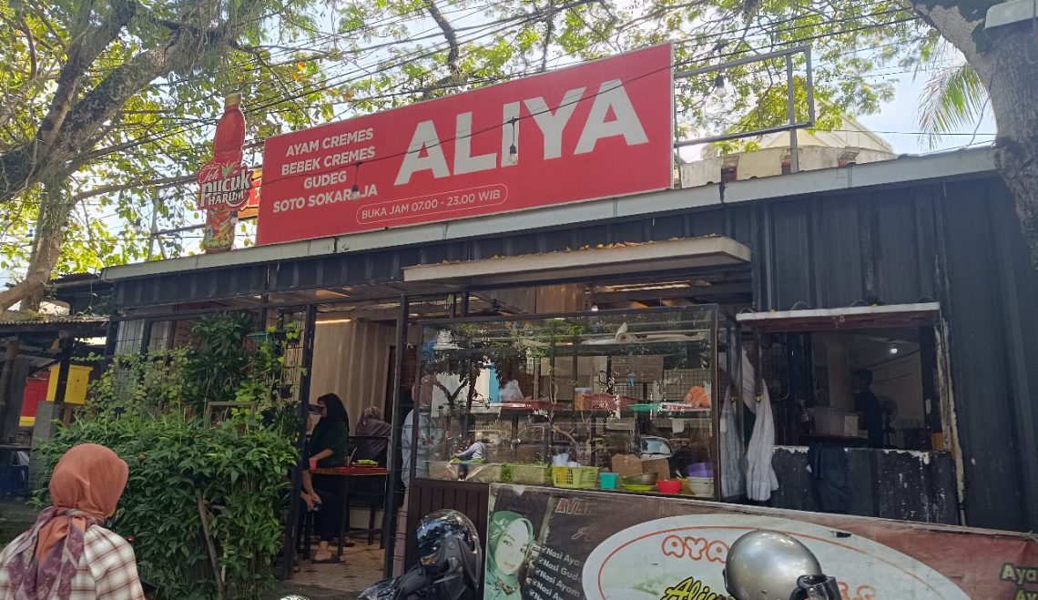 Laper berat? Langsung aja ke Ayam Cremes Aliya. Masakannya khas Jawa, jadi rasanya agak manis, tapi tetep mantap ditemenin sambel yang pas di lidah. Menu andalannya ada ayam kremes, ayam bakar, opor, gudeg, krecek, sampe tempe mendoan.