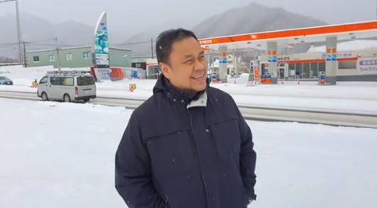 Sesampainya di sana, disambut dengan dinginnya tetesan es yang menggunung dan menutupi tanah. Ya, saat ini Jepang sedang musim salju.