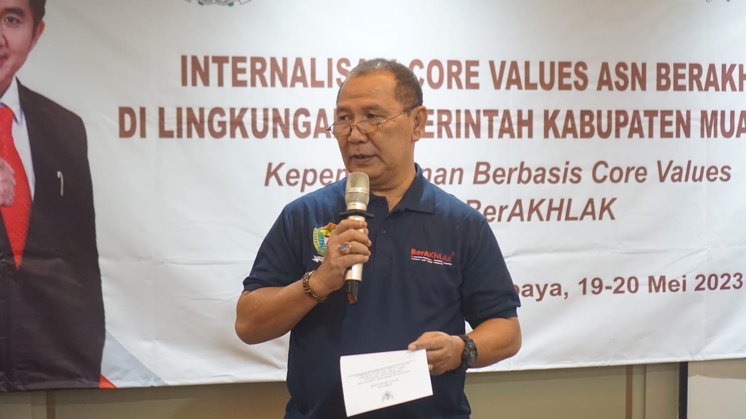 Untuk materi pelatihannya dari ACT Consulting International, menurut H. Amrullah Jamaludin, SE (Staf Ahli Kemasyarakatan dan SDM) yakni sebagai bekal para pimpinan untuk mendorong internalisasi Core Values ASN BerAKHLAK dimasing-masing OPD.