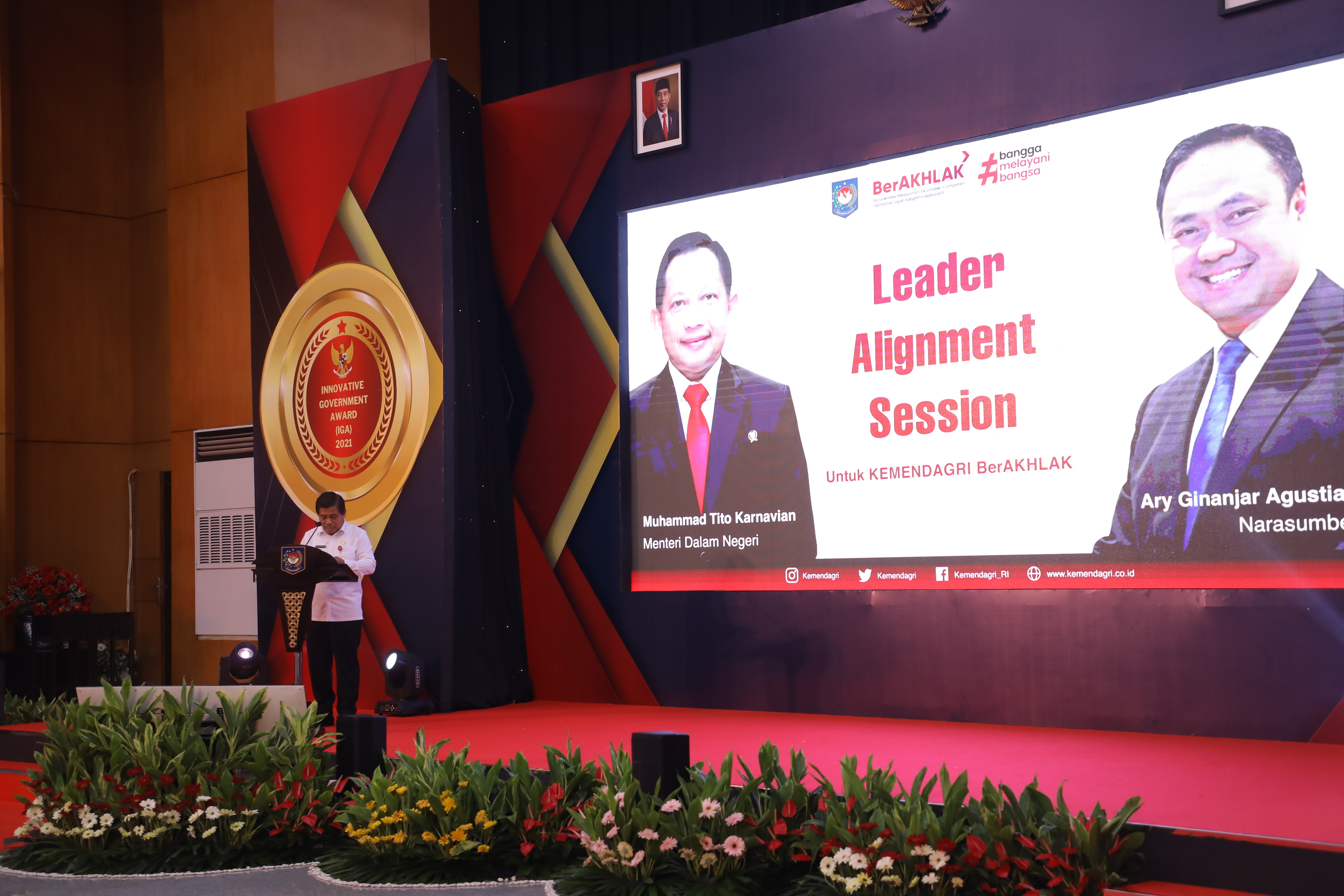 “Nilai-nilai kerja kita yang terbaru yaitu Ber-AKHLAK sudah disepakati bersama dan telah dicanangkan langsung oleh Presiden Jokowi. Untuk itu, kami meminta Pak Ary untuk memberikan bimbingan kepada kita semua demi terwujudnya ASN Ber-AKHLAK, dari segi penerapannya di lingkup Kemendagri ini,” tuturnya saat di atas panggung.