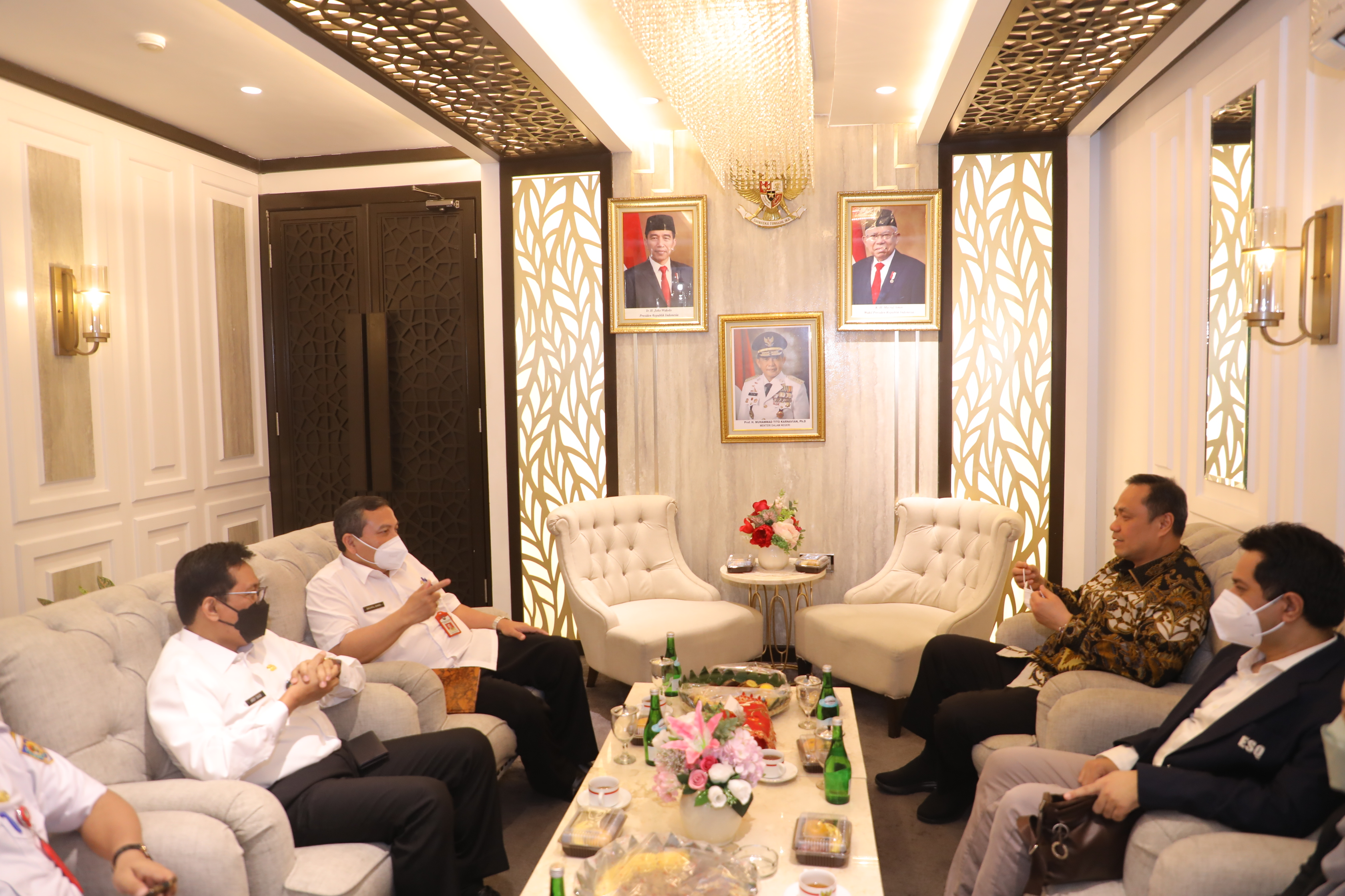 ESQNews.id, JAKARTA - Menteri Dalam Negeri (Mendagri) Muhammad Tito Karnavian menyambut kedatangan Ary Ginanjar Agustian (Founder ACT Consulting) di Sasana Bhakti Praja Gedung C Lantai 3, Kementerian Dalam Negeri (Kemendagri) pada Rabu 29 Desember 2021. Keduanya terlihat berjabat tangan serta bertegur sapa mengenai kegiatan yang sedang berlangsung dengan tema ‘Leader Alignment Session.’