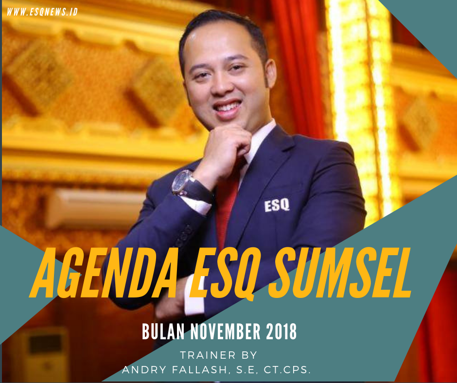 Berikut adalah agenda Training ESQ di kawasan Sumatera Selatan (update per 1 November 2018) :