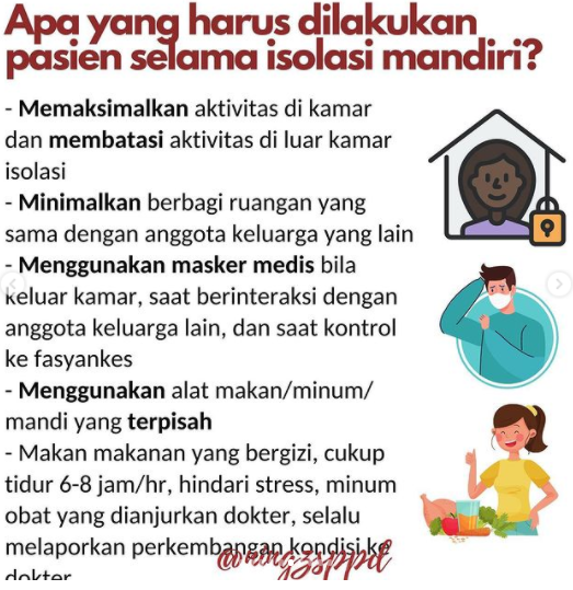 dr. RA Adaninggar, SpPD, menjawab keresahan kita semua di dalam akun pribadinya pada Rabu (06/01/2021). Ia memberikan banyak informasi tentang isolasi mandiri yang bersumber dari Kemenkes RI serta WHO.