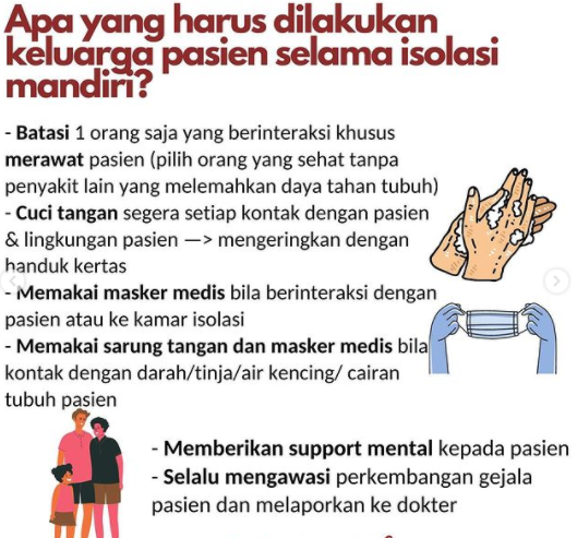 “Pahami tujuan isolasi mandiri dan berapa lamanya. Jangan lepas isolasi sebelum waktu yang ditentukan karena sangat mungkin masih bisa terjadi penularan. Selalu konsultasi ke dokter,” jelasnya.