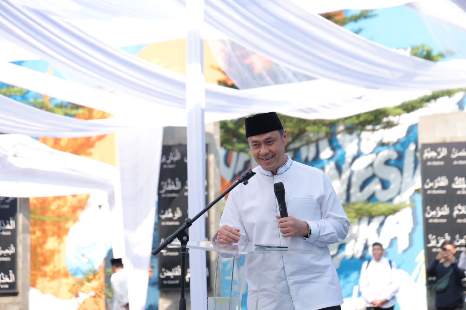 Kegiatan yang digelar di halaman Menara Masjid Agung Al Isra Kota Bogor itu, turut menghadirkan Ary Ginanjar Agustian, yang merupakan pendiri ESQ untuk memberikan tausiyah.