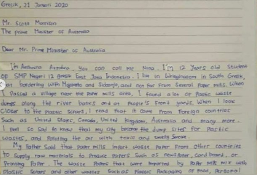Kasus Sampah, Gadis dari Gresik Kirim Surat ke PM Australia, Jerman, dan Donald Trump