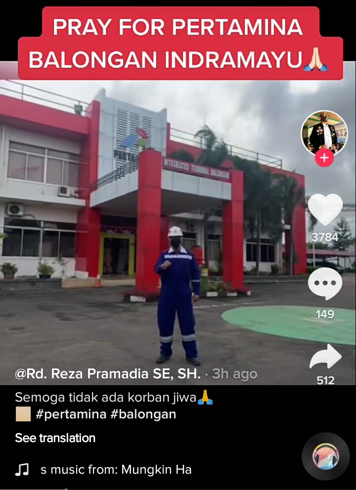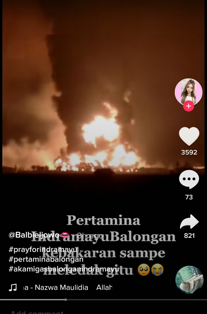 Kata Warga Tiktok Tentang Kebakaran Kilang Minyak Pertamina Balongan