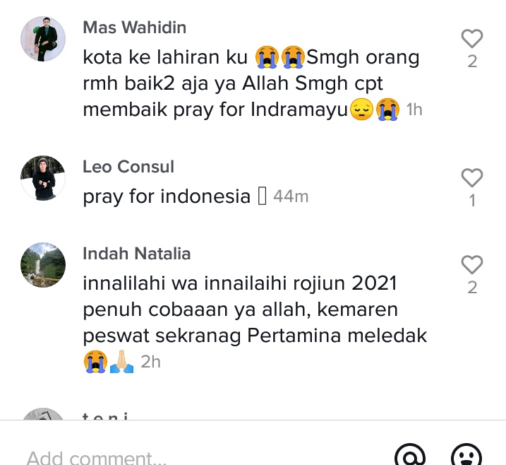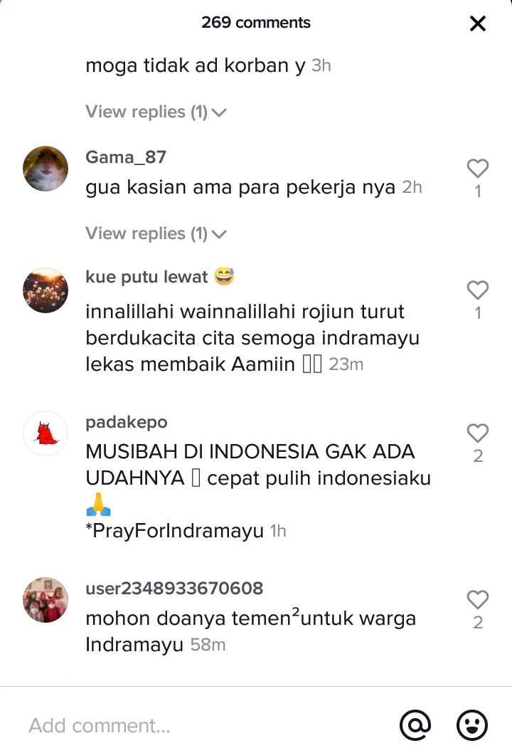 Hebohnya berita ini, mengundang warga tiktok untuk ikut mempublikasikannya dengan hashtag #fyp #foryourpage #prayforindramayu agar banyak orang yang tahu dan ikut mendoakan sesama rakyat Indonesia.